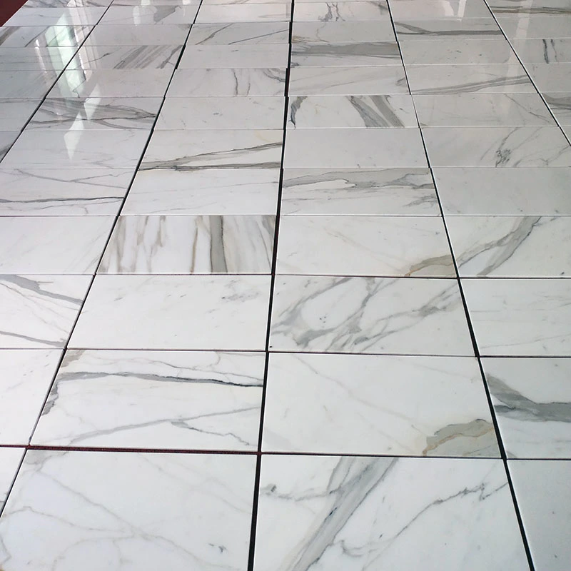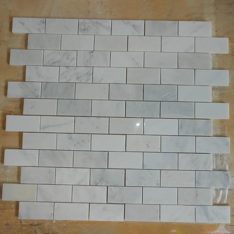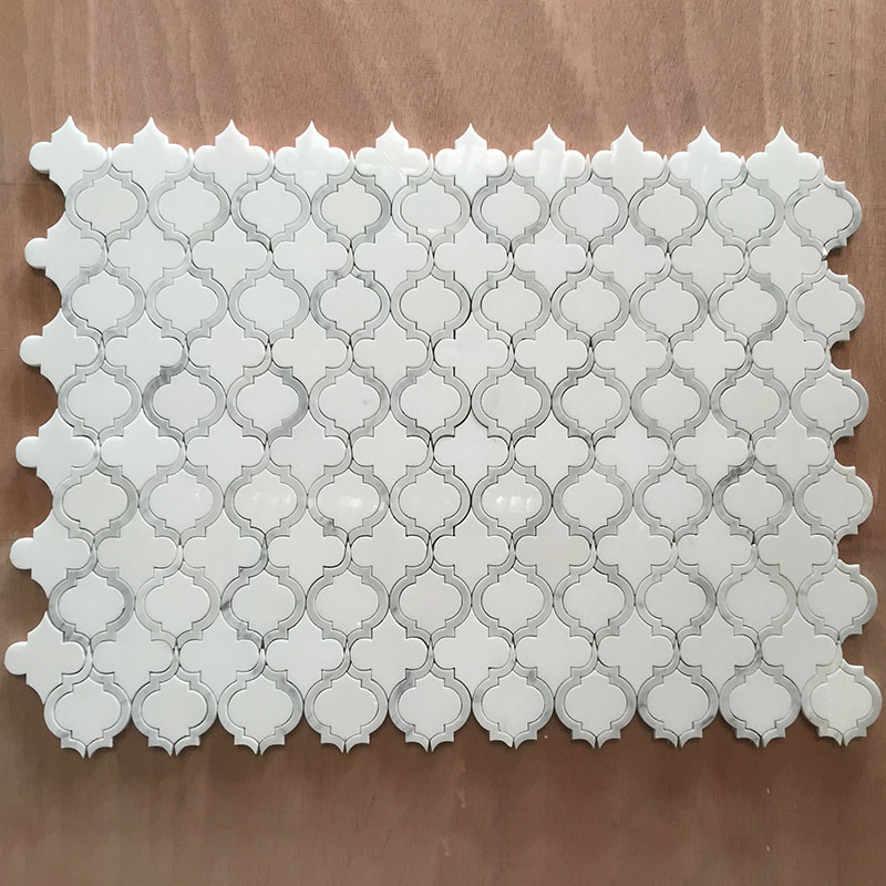 Waterjet mosaic tile in Thassos and Carrara DarkInquire -