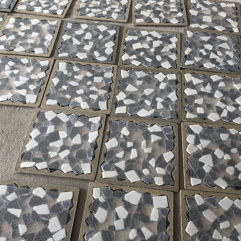 Bones waterjet mosaic tiles in Dolomite and BardiglioInquire -