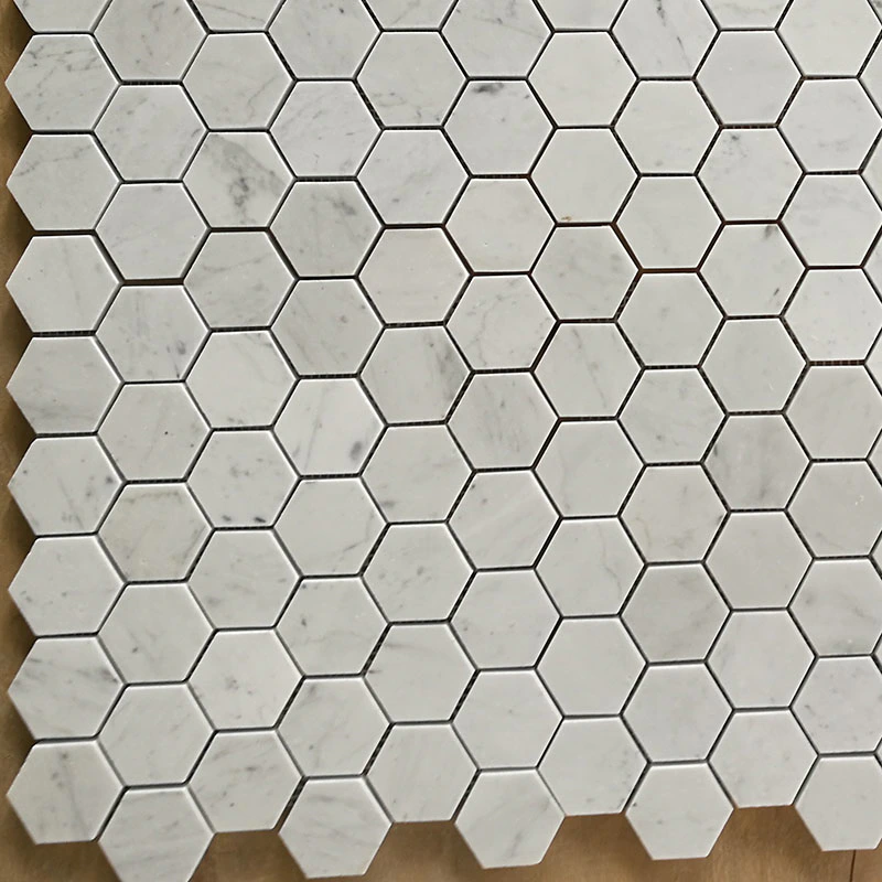 White Carrara Hex.48mm mosaic_HonedInquire -
