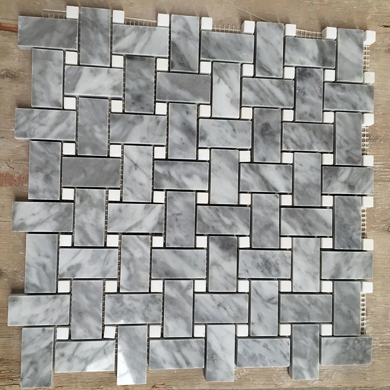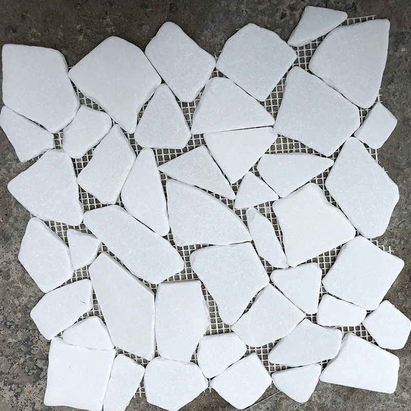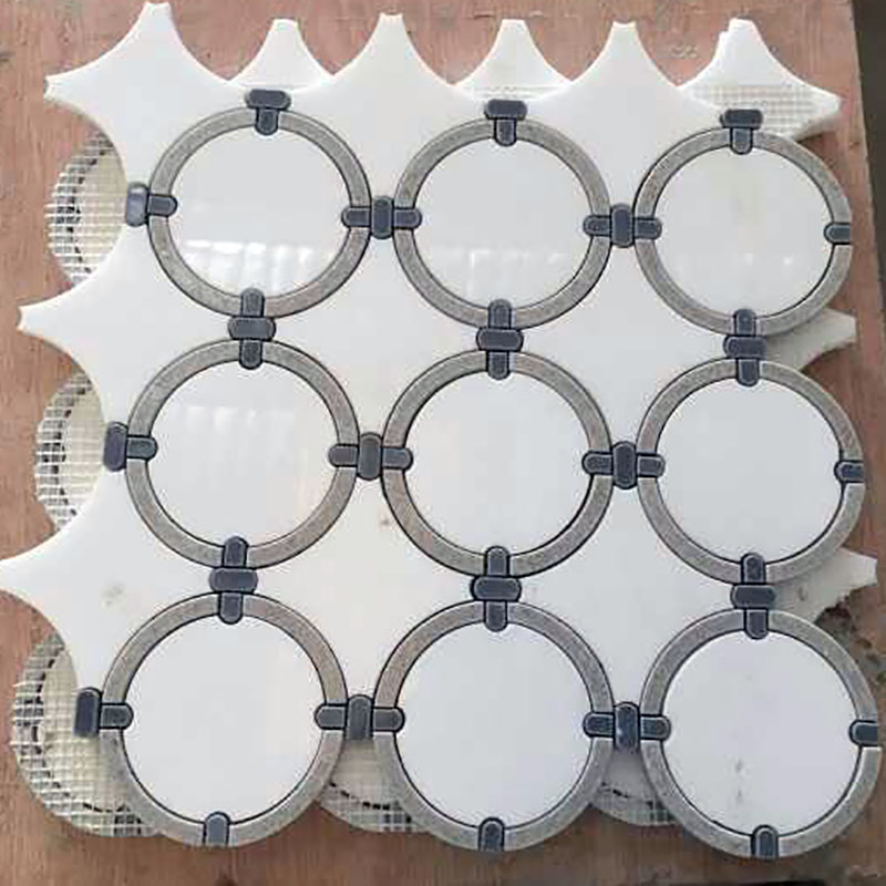 Waterdrip waterjet mosaic tile in Thassos with ShellInquire -