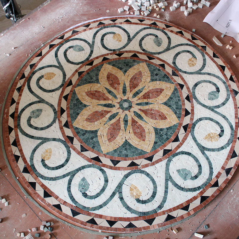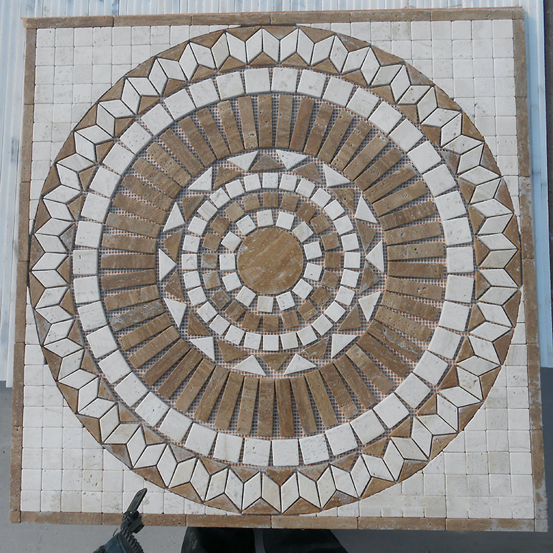 Circle waterjet mosaic tile in Thassos and CinderellaInquire -