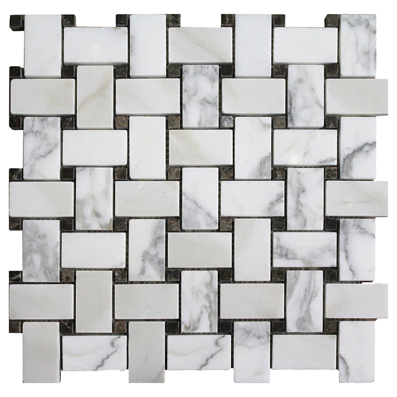 Waterjet mosaic tile in Thassos and calcatta gold mosaic dotsInquire -