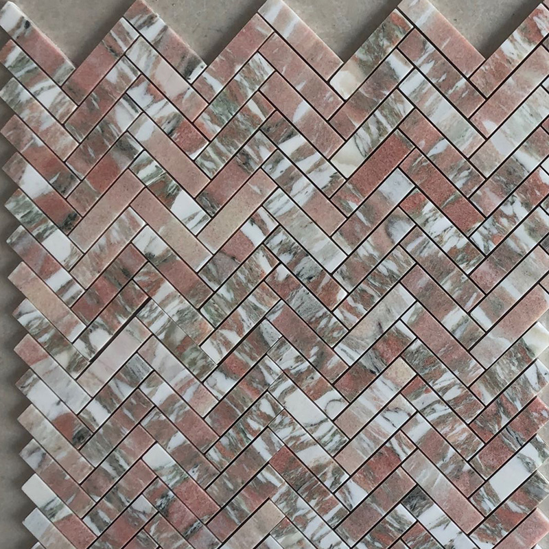 Norwegian Rose Heringbone mosaic 25x75x10mm , honed marble mosaic