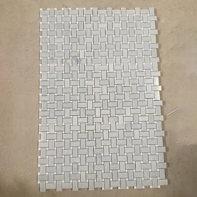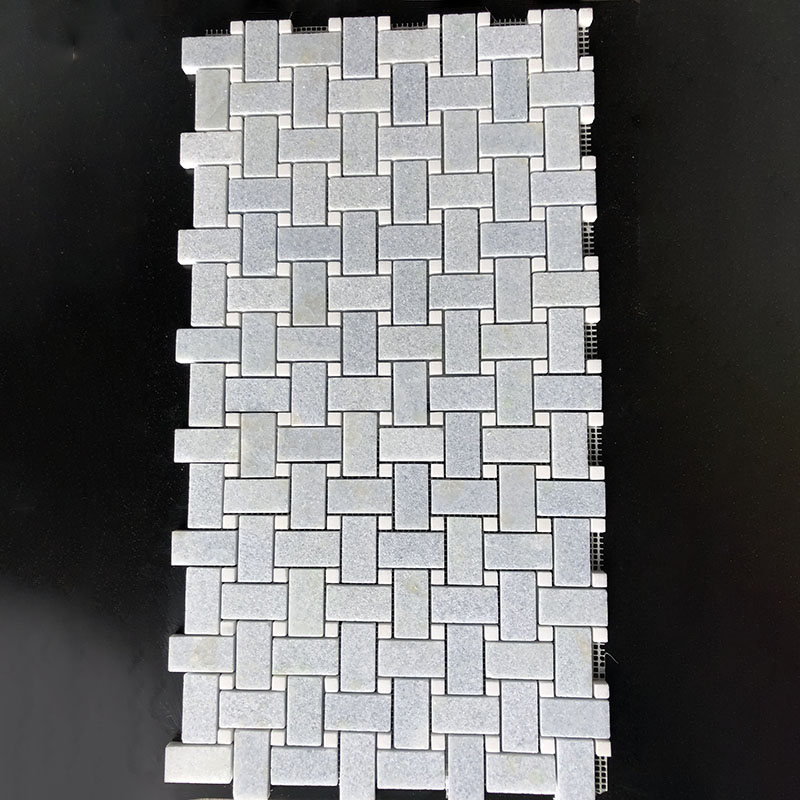 Blue Celeste baseketweave with white thassos